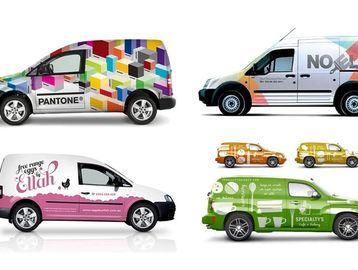 Application of vinyl graphics, decals, or full/partial wraps to vehicles for mobile advertising.