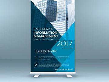 Retractable, portable banner system for trade shows and events. Includes the printed banner and the aluminum stand.